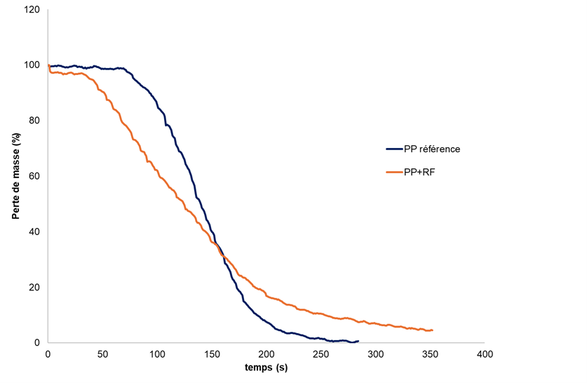Das Ziel ist hier, die Wirksamkeit von BioRFs zu demonstrieren, indem das Brandverhalten von PP+ BioRF-Verbundstoffen im Vergleich zu PP ohne BioRF bewertet wird. Es werden zwei Indikatoren untersucht: