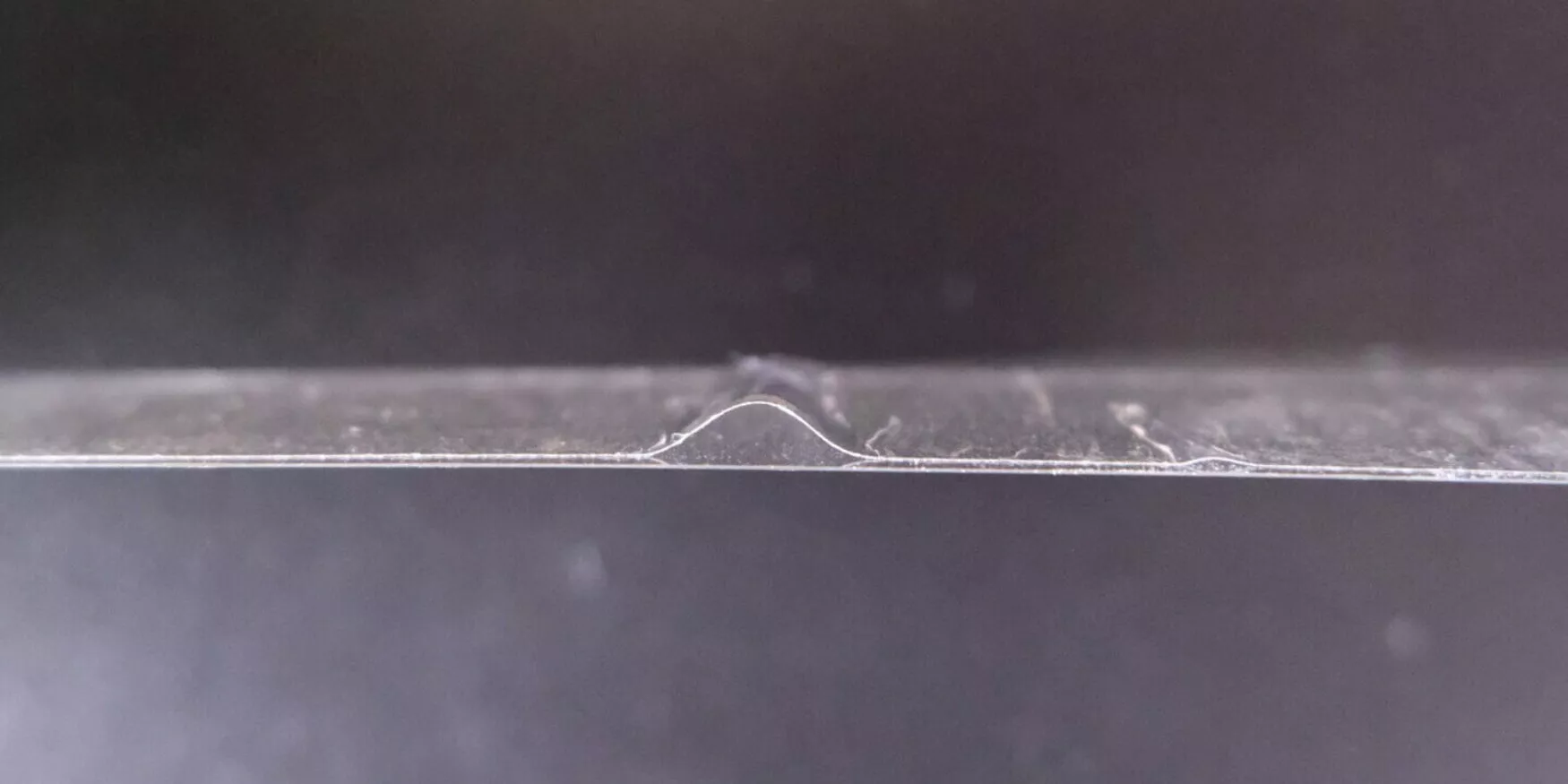 Vorläufige Beobachtungen bei Delaminationsversuchen (Schältests) zeigen ein Problem mit der Haftung einer der Schichten, die aus einem dünnen, nur wenige Mikrometer dicken Polymerfilm besteht.