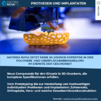Materia Nova bietet Oberflächenbehandlungen von Pulver- und Filamentrohstoffen und/oder dem gedruckten Teil an, um ihm einzigartige Eigenschaften zu verleihen.