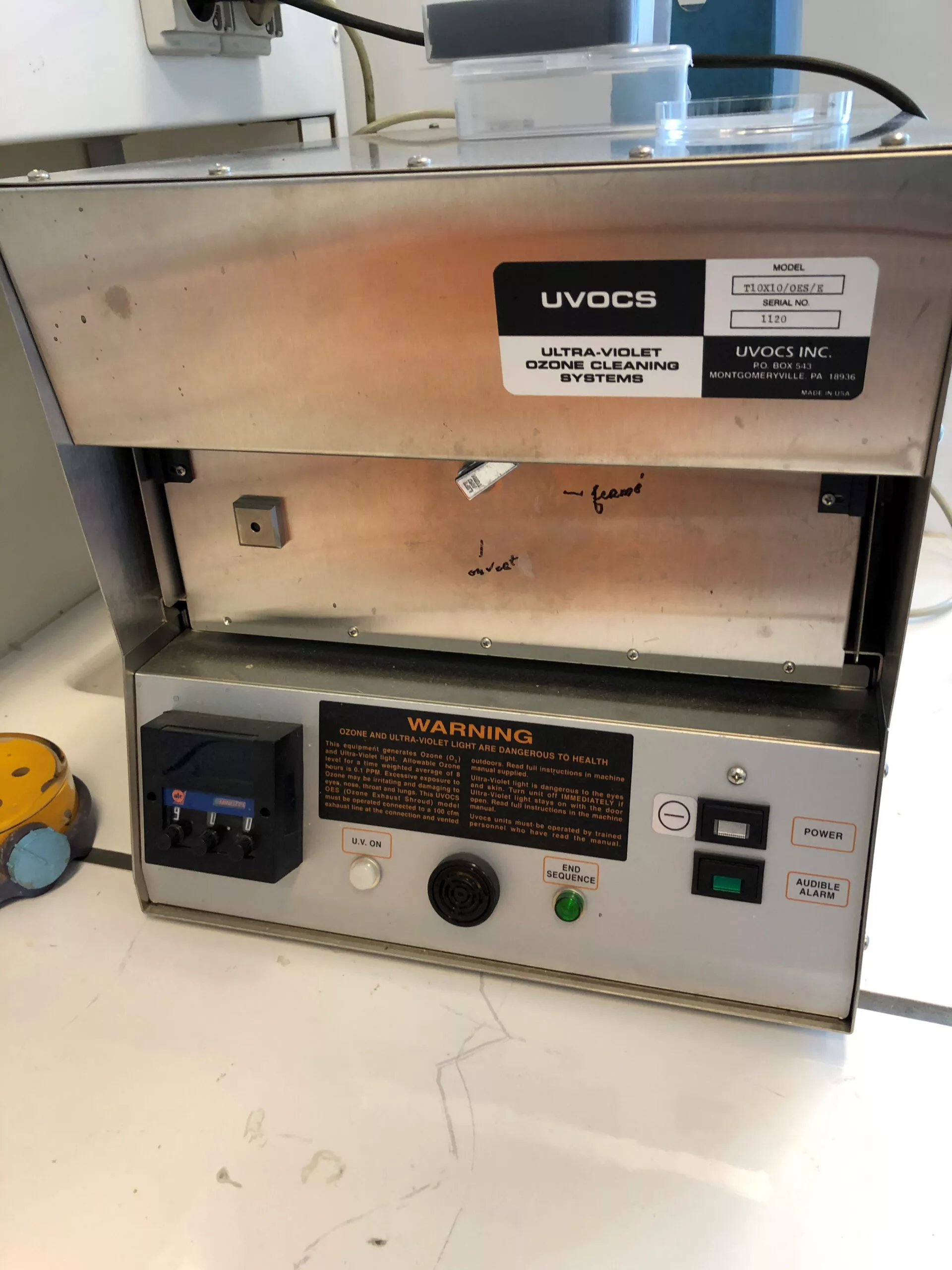 Das UV/Ozon-Reinigungsverfahren bietet eine einfache, kostengünstige und schnelle Methode, um ultrareine Oberflächen zu erhalten, die frei von organischen Verunreinigungen sind. Dieses Verfahren ist ideal, wenn eine Dünnfilmabscheidung mit hervorragender Oberflächenhaftung erforderlich ist. Ultrareine Oberflächen können leicht durch UV-/Ozonbehandlung innerhalb von einer bis mehrere Minuten erzielt werden, nachdem die Oberfläche mit herkömmlichen Techniken gereinigt wurde. Der UV-/Ozon-Reiniger ist nicht dafür ausgelegt, grobe Verunreinigungen zu entfernen. Die typischen Zeiten für eine UV-/Ozon-Reinigung betragen etwa 1 Minute.