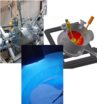1/ experimentelle Produktionen: ABBEADS I und II: Behandlungsvolumen: 0,1-0,5 Liter; Pulver: 0,5 bis 500 µm; Kleinteile und Perlen: mm bis cm; 1 oder 2 Kathoden; HF-Spule; Alle Arten von Beschichtungen (Nitride, Karbide usw.); Funktionalisierung, Oxidation/Reduktion