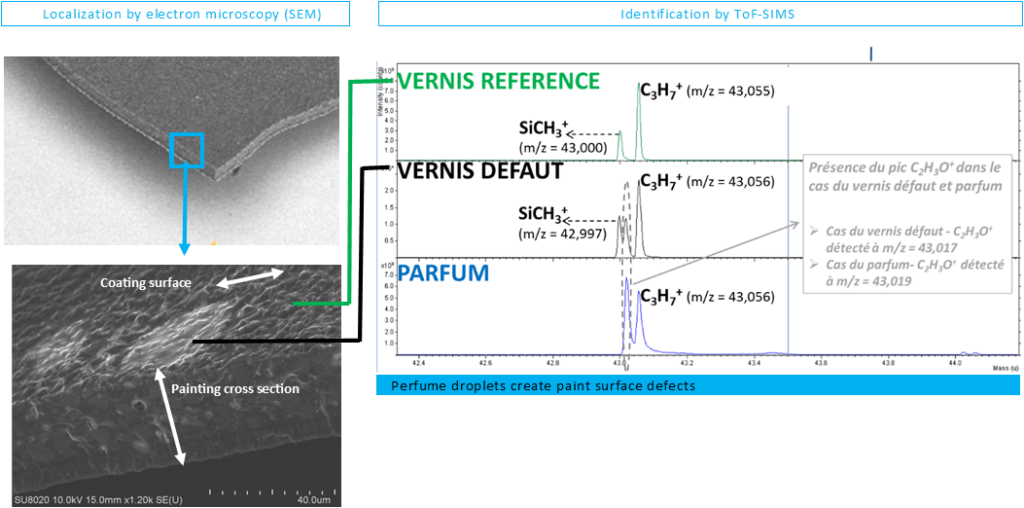 The ToF-SIMS spectrometer identifies this contamination as a perfume contained in the cream.