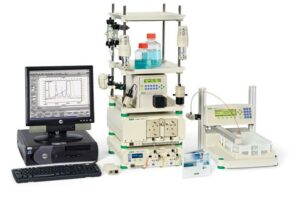 Fast protein liquid chromatography is a type of chromatography often used to analyze or purify protein mixtures. As with other chromatography techniques, the separation occurs because the various components of the mixture have different affinities to two materials, a moving fluid (mobile phase) and a porous solid (stationary phase).
