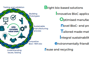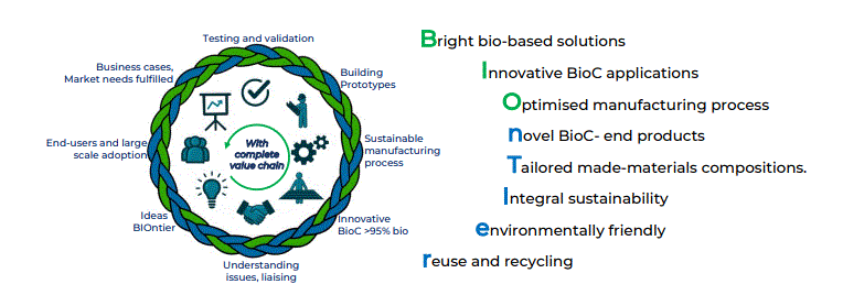 develop sustainable and circular biocomposites, with a biosourced content greater than 95%, with high performance for multi-sector applications.