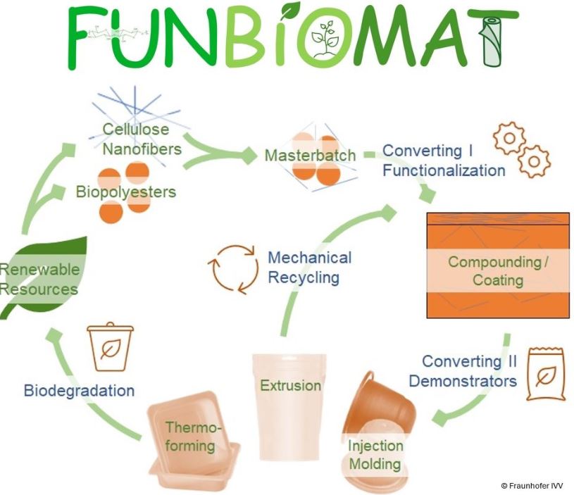 The aim of the FUNBIOMAT project is to develop novel functionalization methods for the optimal distribution of cellulose nanofibers (CNF) in biopolyesters to significantly improve the thermomechanical properties, barrier functions and biodegradability of these materials.