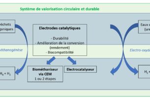 - Our knowledge in the field of bio-electrochemistry and the functionalisation of electrodes and electrolysis to support the development of new electrode materials for the electro-oxidation of urea and for the assisted biomethanisation of CEM (Design electrolysis cells and implementation of treatment processes (reactors).