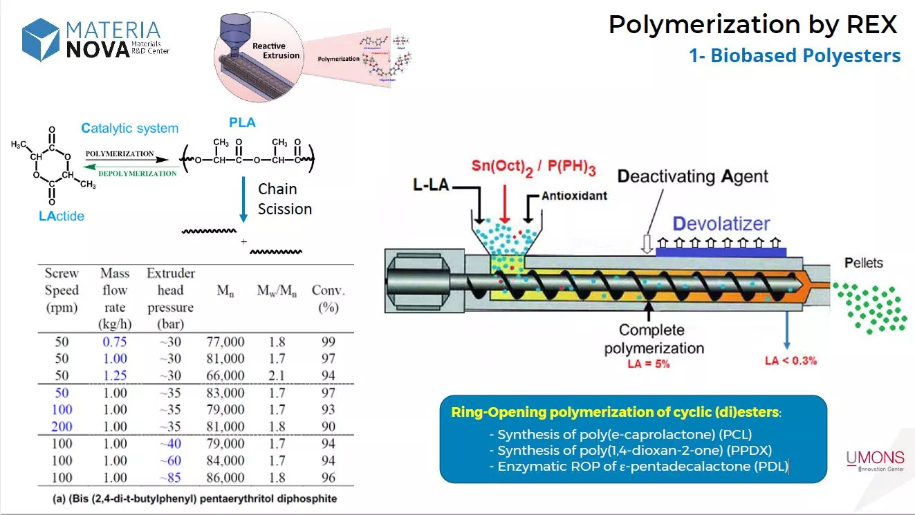 - Synthesis with enzymes by reactive extrusion and study of PLA degradation by enzyme,