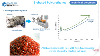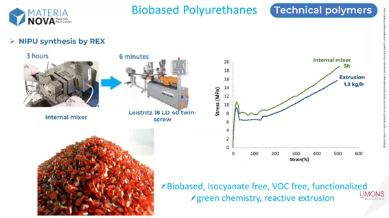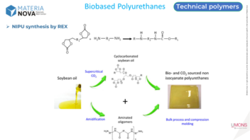 Thanks to research projects carried out at Materia Nova, new bio-based, biodegradable and non-toxic alternatives can be considered, such as NIPU: Non Isocyanate PolyUrethanes.