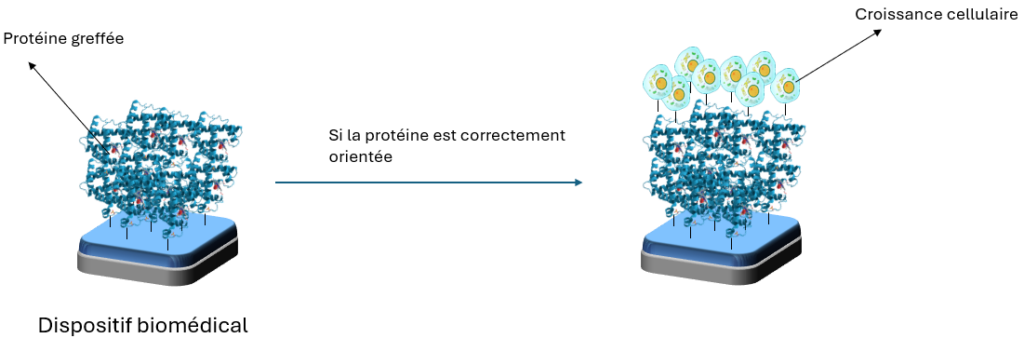 Comment comparer la biocompatibilité de 2 greffages différents pour l'application visée ? La conformation moléculaire et l’orientation de la protéine sont elles adaptées ?