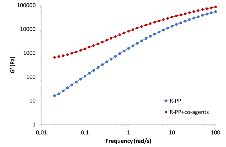 Du polypropylène recyclé (R-PP) a été modifié chimiquement, par REx, de manière à adapter ses propriétés rhéologiques selon un cahier des charges spécifique défini par le client.