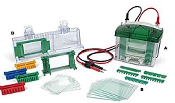 Analyse d'ADN ou de protéines (taille). Le p.rincipe consiste à soumettre un mélange de molécules à un champ électrique ce qui entraine la migration des molécules chargées, en fonction de différents paramètres tels que la charge, la masse, la forme. la vitesse de migration sera variable, ce qui permet la séparation de différentes molécules. On a génaralement des gels d'agarose ou de polyacrylamide.