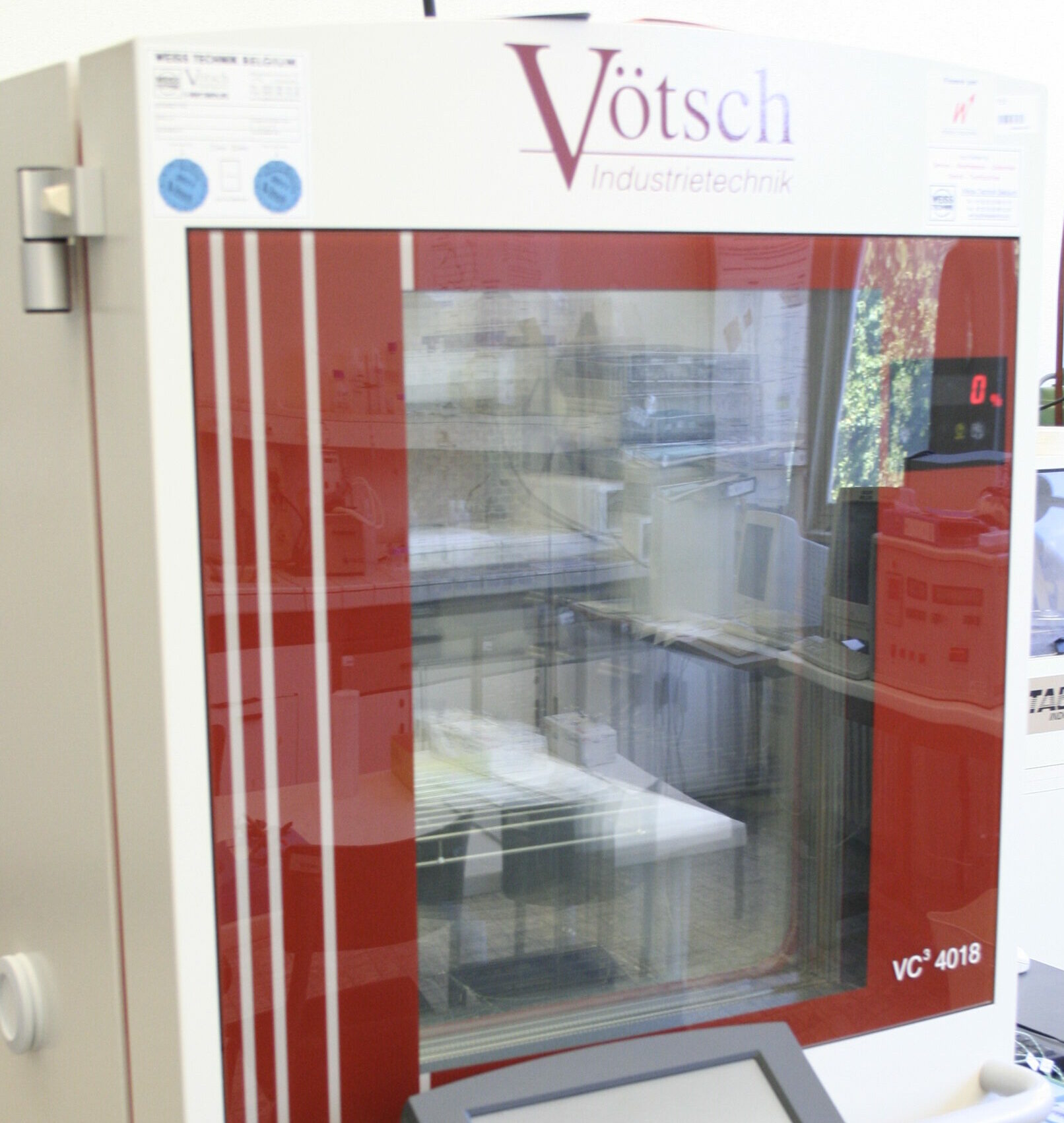 L’enceinte climatique VOTSCH VC³ 4018 est une enceinte permettant d'effectuer des cycles en température et humidité contrôlée. Ces tests climatiques ont une plage de température allant de -40°C à 180°C.