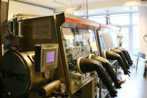 La boîte à gants est utilisée pour la fabrication sous gaz inertes de dispositifs opto-électroniques (OLED et OPV) jusqu'à des dimensions 10x10 cm2. La boite à gants est connectée à un sublimateur thermique multisources Kurt J Leskers SPECTROS et contient des équipements de caractérisation des performances de dispositifs OLED et OPV (sphère d'intégration et simulateur solaire)