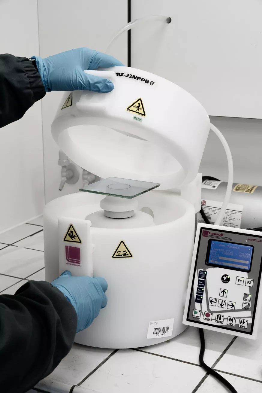 Les spin coaters sont utilisés pour le dépôt de couches minces d'épaisseur nanométrique ( de qqs dizaines à une centaine de nm) au départ de solutions lquides de matériaux polymères, notamment pour la fabrication de dispositifs opto-électroniques (OLED’s et cellules solaires organiques). Nos spin coaters sont conçus pour travailler avec des solutions aqueuses ou des solutions organiques (en polypropylène vs en PTFE), également au besoin en atmosphère inerte.