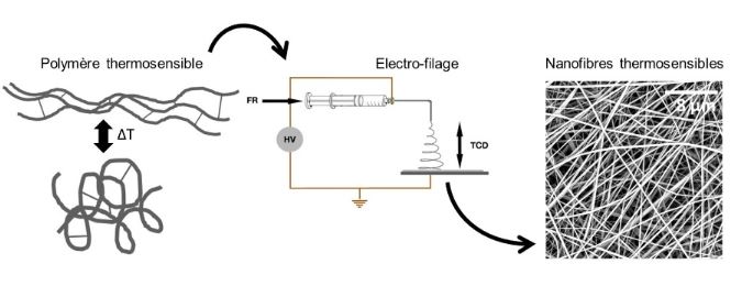 Le projet PHOTO(NI)TEX propose dès lors, de concevoir et fabriquer des structures photoniques en tirant partie, notamment, de techniques d’auto-organisation au niveau membranaire (instabilités élastiques dans les films polymères, électro-filage, auto-organisation de particules dans une matrice polymère) pouvant interagir avec la « lumière » infrarouge. Les processus mis en place pourront être transposés aux fibres multi-composants de façon à obtenir une texturation à l’échelle du fil. Le caractère stimulo-répondant de la solution proposée est basé sur l’intégration de polymères à mémoire de forme, sensibles aux variations de température et d’humidité.