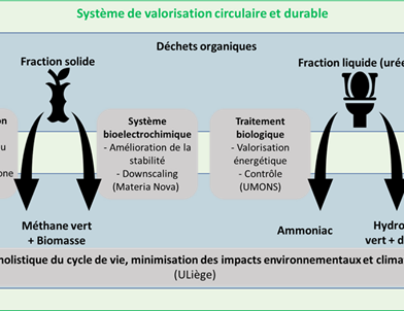 - d’une part la fraction solide des déchets organiques alimentaires pour la production de biométhane. Materia Nova travaille sur l'amélioration du rendement du procédé de biométhanisation mais également une décentralisation de la production.