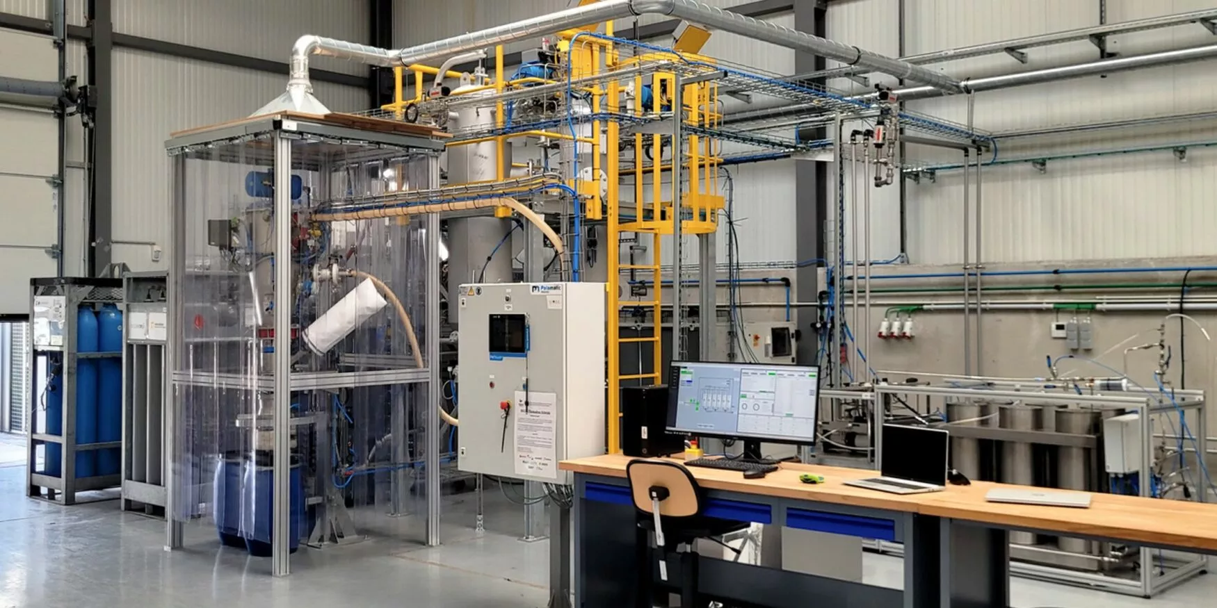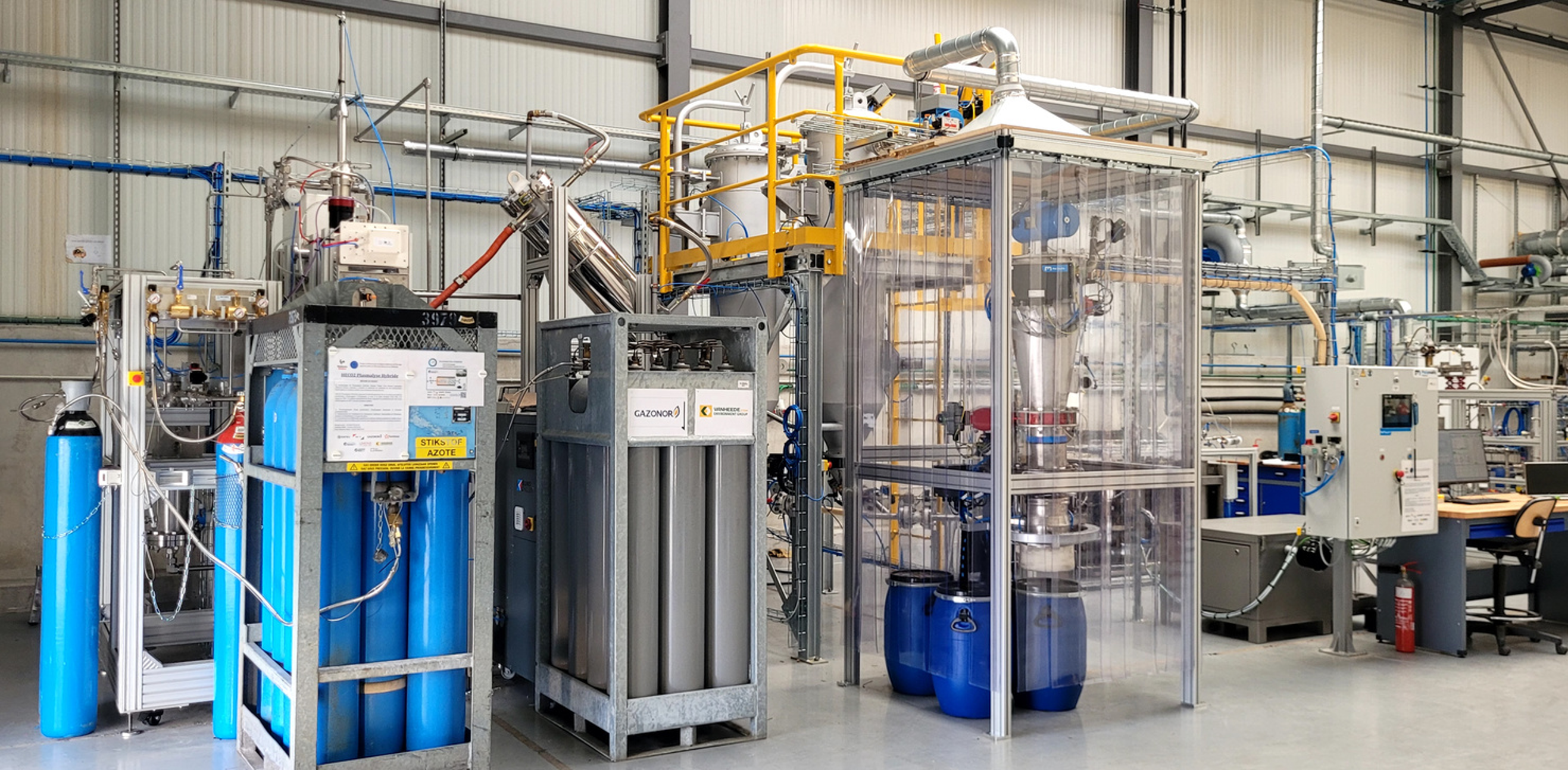 Un pilote de démonstration en laboratoire est en cours de finalisation chez Materia Nova. Il produira jusqu’à 3,3 kg/h d’hydrogène et 10 kg/h de carbone solide dans une installation modulaire et évolutive, conçue pour intégrer différentes configurations de réacteurs plasma.