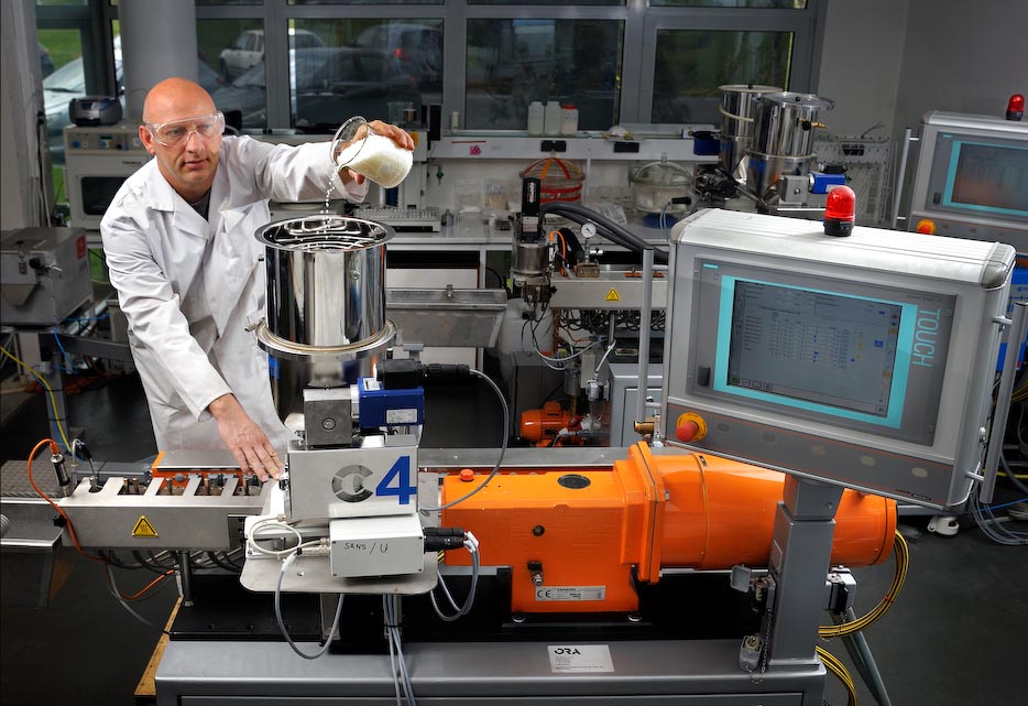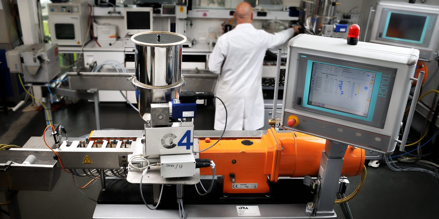 Notre parc de réacteurs et extrudeuses permet d'effectuer des évaluations approfondies à la fois du traitement et des attributs fonctionnels de matériaux (même avec seulement quelques grammes), de réaliser des productions de composés polymères, de monocouches et de films, ainsi que le moulage par injection.