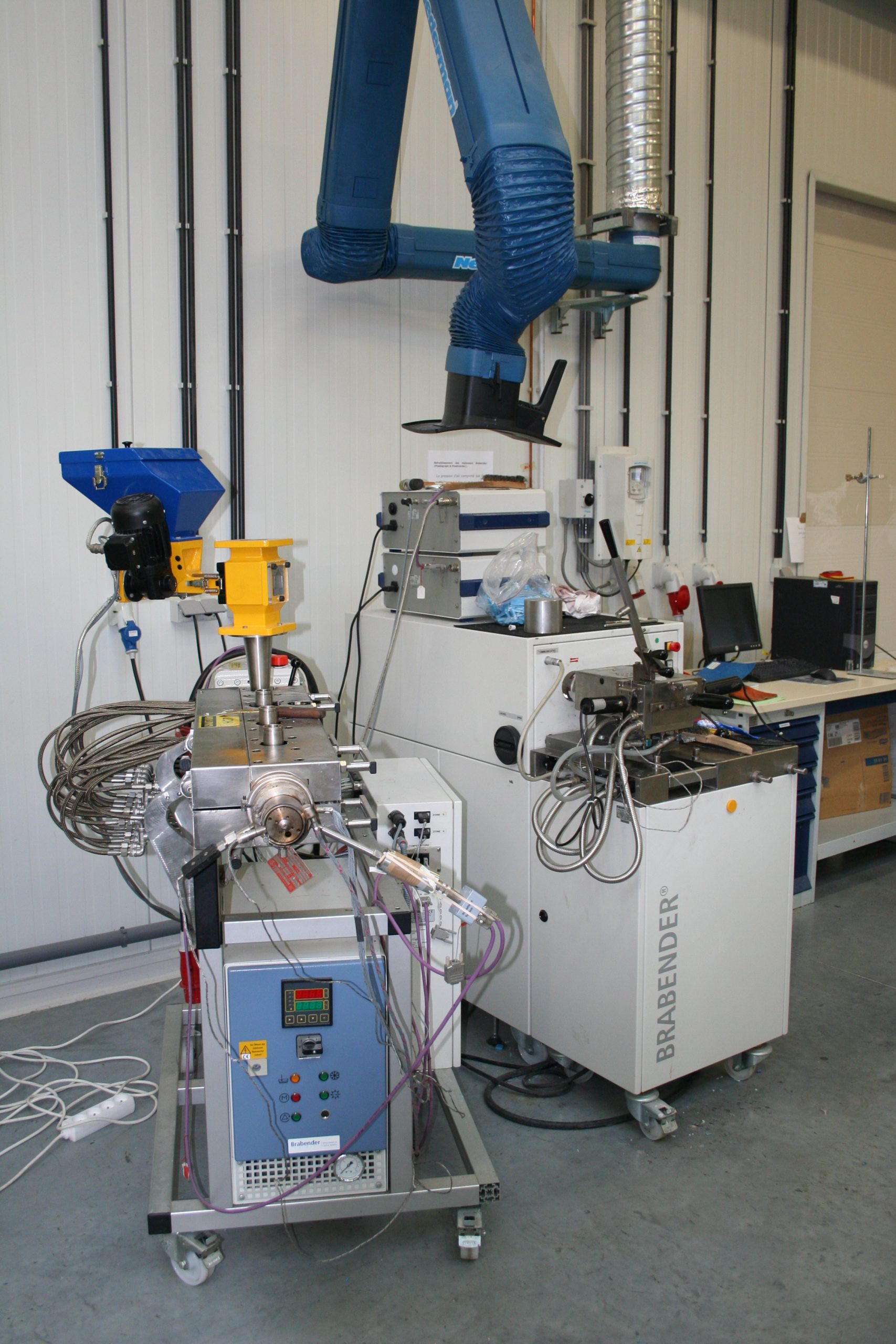 - Materia Nova dispose d'un parc d'extrudeuses adaptées à l’extrusion réactive et qui lui permet une montée en échelle progressive pour réaliser des réactions de greffage, extension de chaîne ou polymérisation, sur quelques dizaines de grammes, centaines de grammes à quelques kilogrammes. Ces extrudeuses sont équipées d'accessoires permettant de doser différents réactifs sous forme liquides ou de poudres.